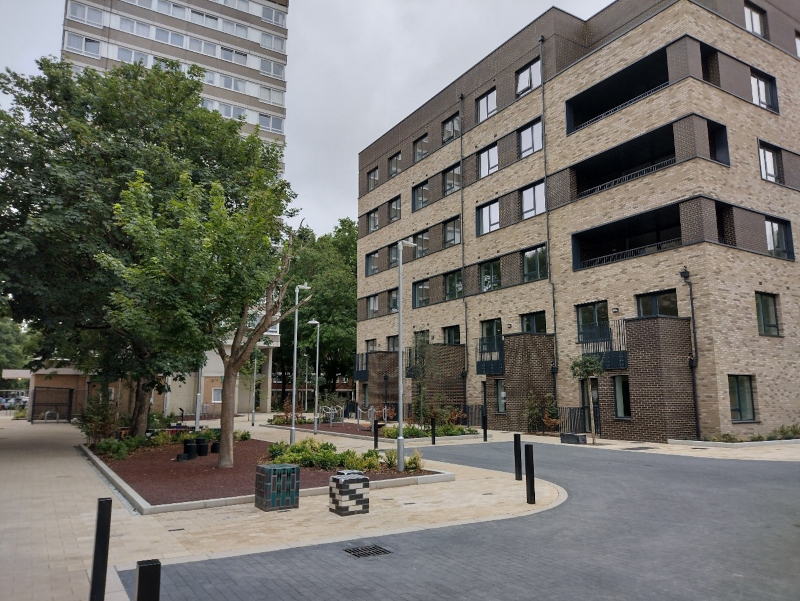 The scheme completed in June 2025. A residential development of 106 new Council Rent homes within the Surrey Lane estate. The development comprises three blocks, ranging from four to six storeys, together with associated landscaping and environmental improvements.