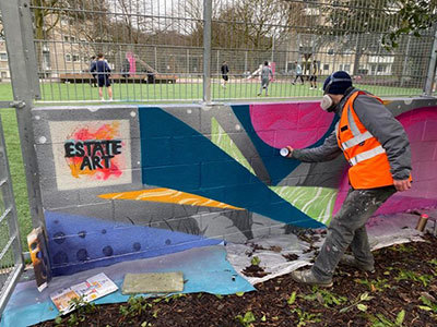 The Regeneration Team commissioned local art organisation, Estate Art, to complete a graffiti mural on the wall of the Multi Use Games Area at Witley Point.