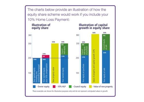 The funds from the sale of your existing property (market value) will go towards buying the new, higher value property in the scheme. You can opt to keep your 10% Home Loss Payment or use it to increase your equity in the new property. If you are unable to afford to purchase a greater share of the new property or buy it outright, we will hold on to the portion you cannot buy. No rent or interest will be charged on our share. If you have a mortgage, your current level of borrowing will be maintained. You will also have the option to buy up our equity share of the property over time.