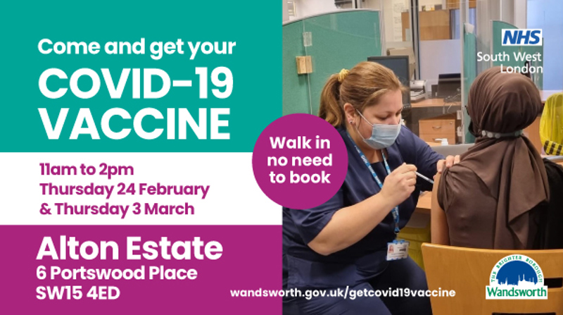 For more information about the COVID-19 vaccine, eligibility and other local walk-in clinics, please visit wandsworth.gov.uk/getcovid19vaccine