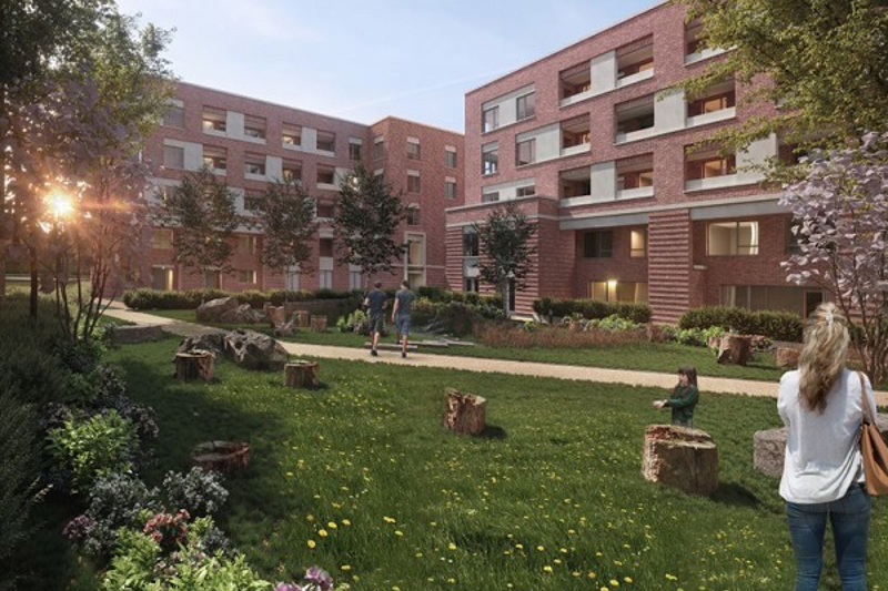 The development will include green roofs, communal air-source heat pumps, water efficient fittings and electric vehicle charging points. There will be bicycle storage, car club membership and a new shared street with enhancements to existing public space – including a new and improved children's play space, replacement multi-use games area and surface water drainage systems. Every home will have private outdoor space provided by a balcony, garden or terrace.
