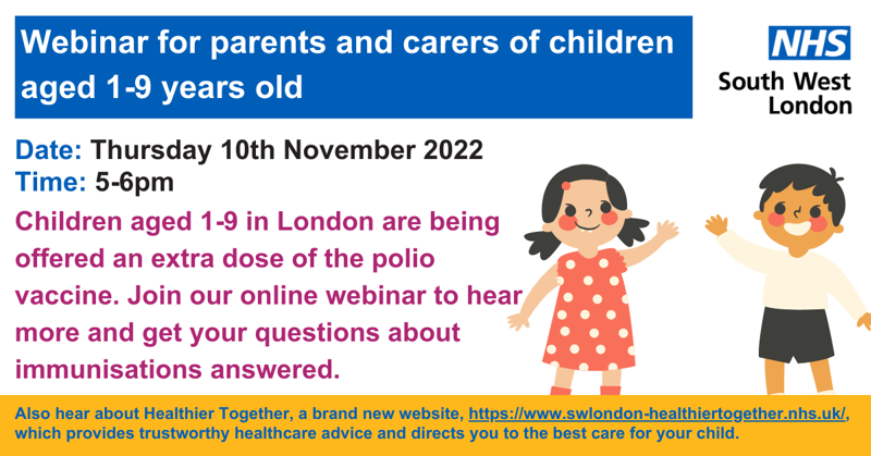 South West London NHS is hosting an online webinar for parents or carers of children aged 1 to 9 years old about immunisations, including Polio.