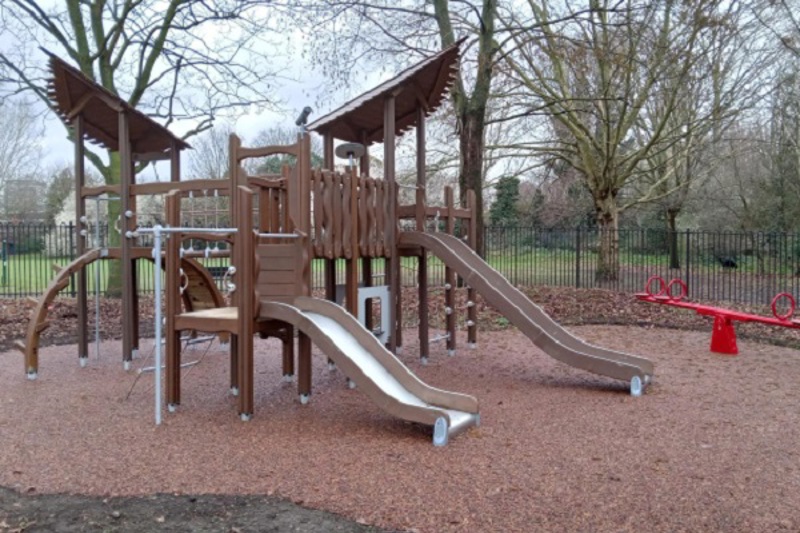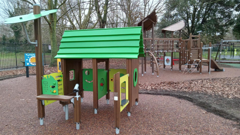 The revamped playground offers younger children brand new play equipment including swings, a roundabout, multiplay activity tower, village shop playhouse and junior exercise trail.