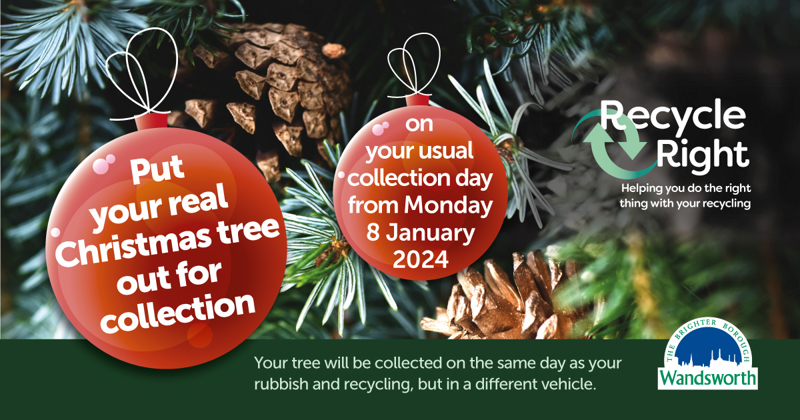 Real Christmas trees are being recycled for free. This has already started on your normal collection day.