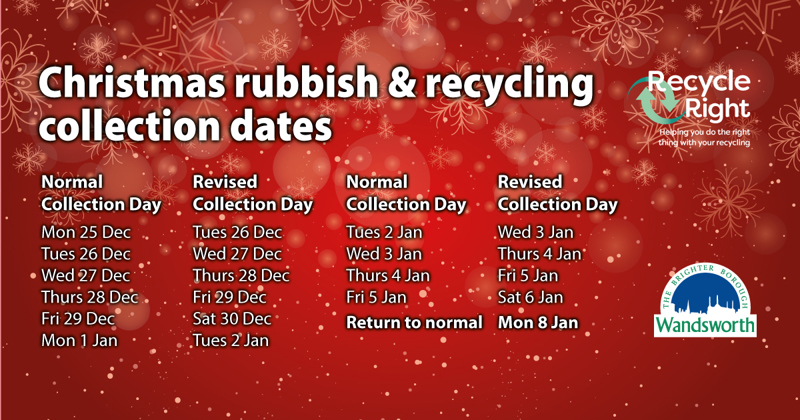 - Rubbish and recycling more info + collection dates over Christmas.