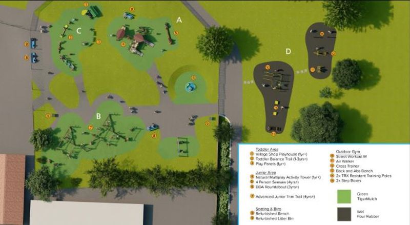 The revamped playground will offer younger children brand new play equipment including swings, a roundabout, multiplay activity tower, village shop playhouse and junior exercise trail.