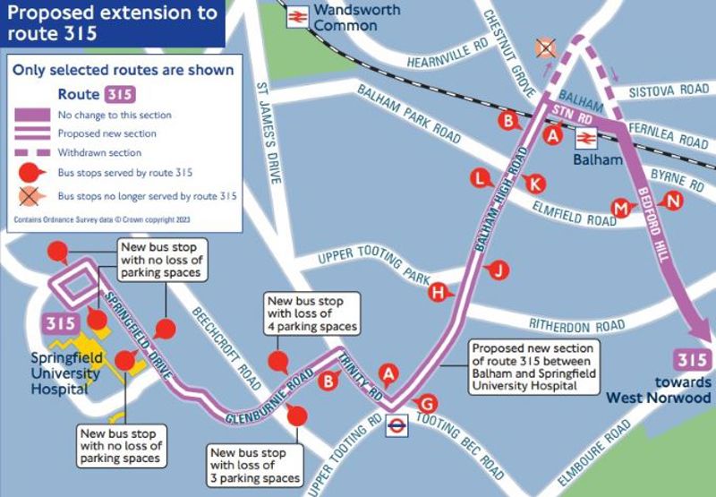 Bus chiefs at TfL are proposing to extend route 315 to improve transport links between Balham High Road and the hospital site.