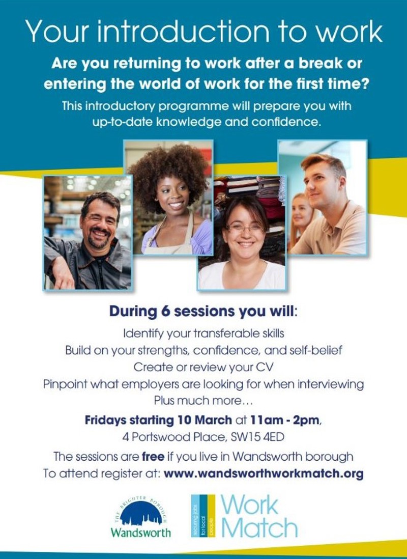 To register for the “Introduction to Work” course or to find out more, visit www.wandsworthworkmatch.org, email wandsworthworkmatch@wandsworth.gov.uk or call (020) 8871 5191.