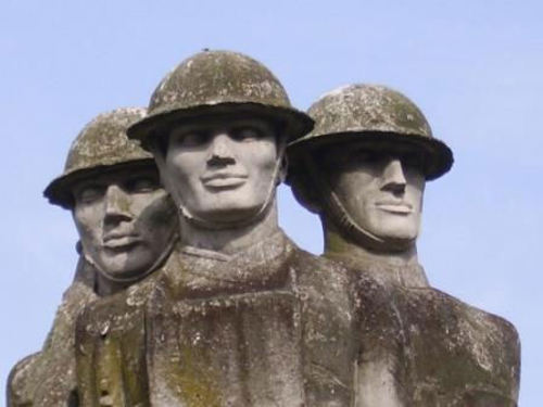 The Portland stone memorial shows three helmeted soldiers with a serpent of war entwined through their legs and feet and commemorates the division’s 10,865 losses. The left figure is based on Trooper Morris Clifford Thomas of the Machine Gun Corps, the central one on Sergeant J Woods of the 9th Royal Sussex, while the third is based on war poet and writer Robert Graves who served as a Captain with the 2nd Battalion Royal Welsh Fusiliers.