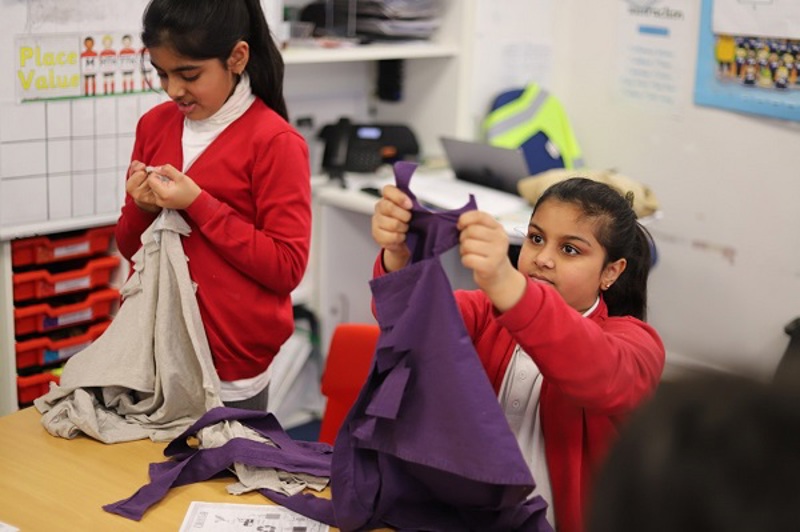 The children, with support from their teachers, have practiced weaving techniques on Wandsworth-sourced reclaimed fabrics to create an individual and unique piece of cloth, which have all been joined together to create the textile river.
