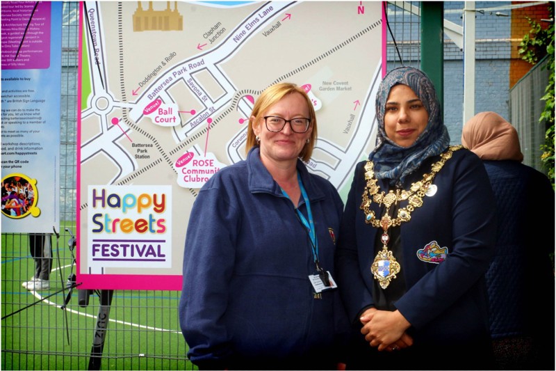 Despite the rain, more than 800 local residents joined the Mayor of Wandsworth to enjoy this year's free Happy Streets festival in Battersea, with live performances, face painting, food, sports, wellbeing and craft activities.