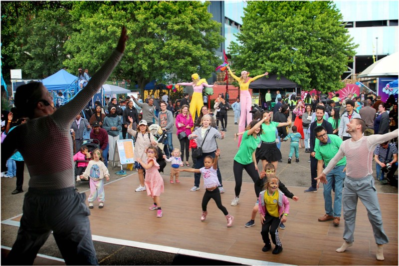 Pop-up performances from Blink Dance Theatre, the Divine Stilt Walkers and remote controlled-wheelie bins kept children entertained.