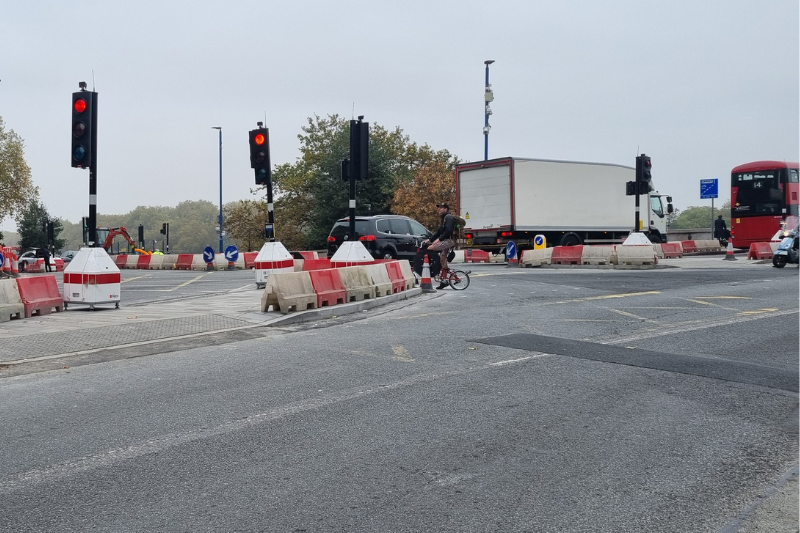 On the evening of November 6, we were able to remove most of the barriers from Putney Bridge and the High Street approach, as the new islands in these areas are now almost entirely complete. The last thing to install will be the signal equipment, which can be done with minimal further disruption. This progress has allowed us to reopen the second southbound all-traffic lane on Putney Bridge, which has eased the traffic flow across the river.