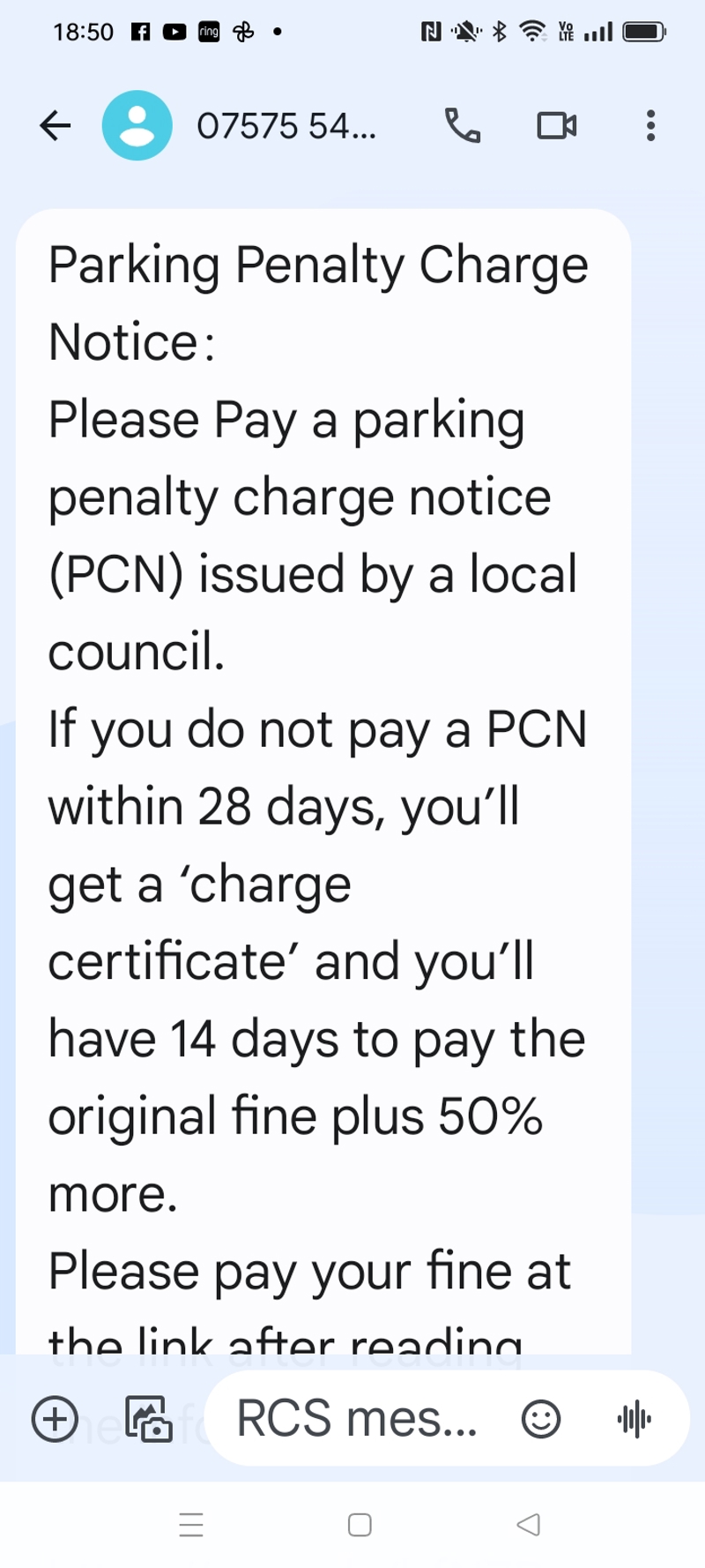 We will never send a text message asking you to pay a PCN.