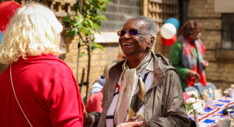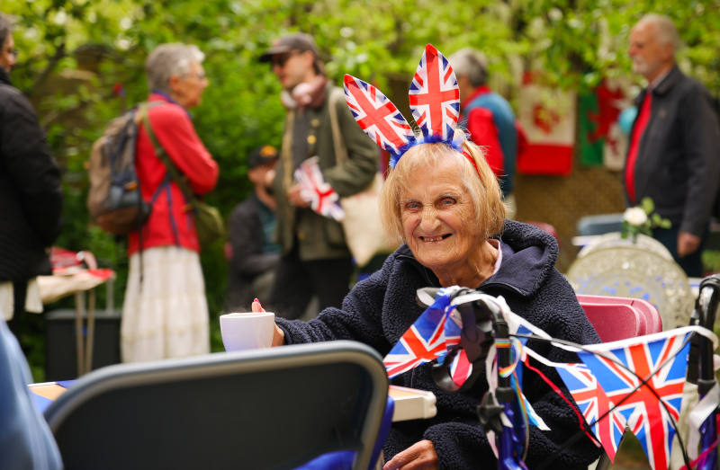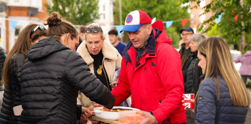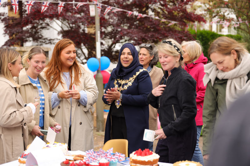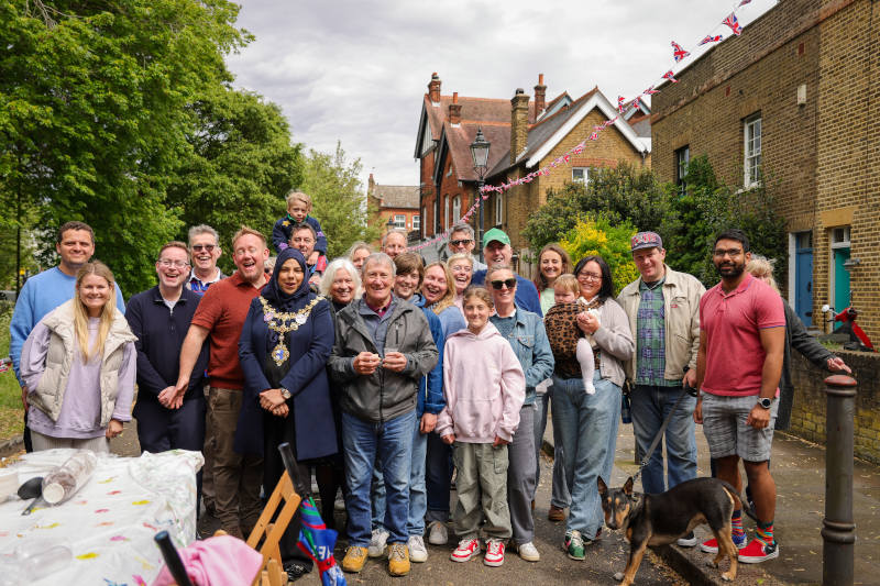 The Mayor of Wandsworth joins a group of residents enjoying the celebrations at Alma Terrace, SW18.