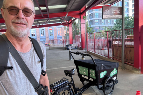 Norman Marshall took a cargo bike from Earlsfield to bring his rubble to the Wandsworth Recycling Centre. He advised making sure you use clean sacks!