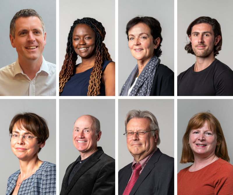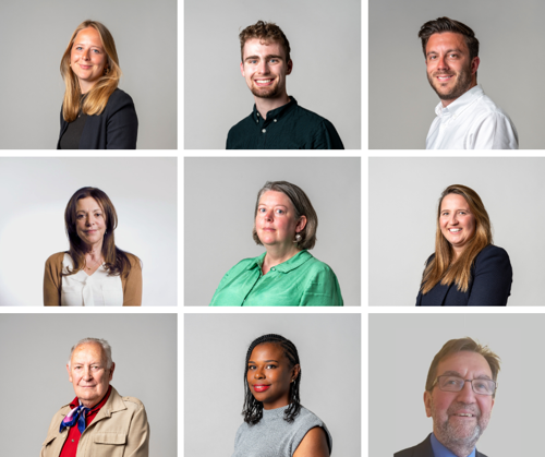 Left to right: Simon Hogg, Kemi Akinola, Judi Gasser, Aydin Dikerdem, Jenny Yates, Paul White, Graeme Henderson, Angela Ireland