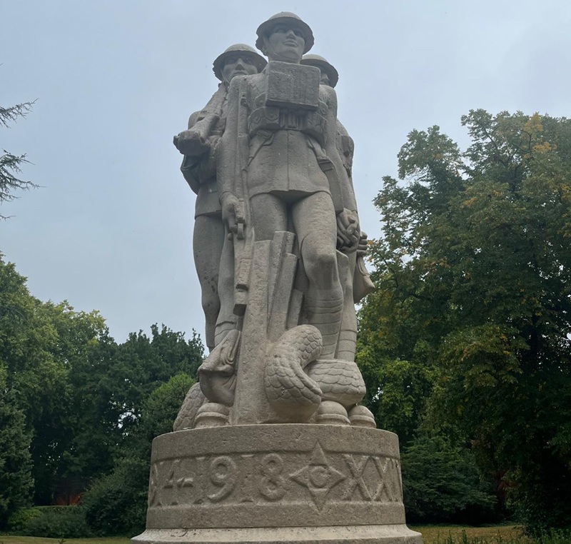 24th Division War Memorial was sculptor Eric Kennington’s first public commission. Unveiled in 1924, it was upgraded to Grade II* listed status in 2005. The work commemorates the service of a division which served on the Western Front in the First World War, which saw more than 10,000 men killed or missing presumed dead.