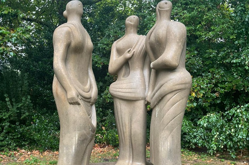 Henry Moore – Three Standing Figures was created in 1947 and was originally exhibited at the London County Council’s first Open-Air Sculpture Exhibition in Battersea Park in 1948. Donated to the council, it has remained in the park since 1950 and was designated a Grade II listed structure in 1988.