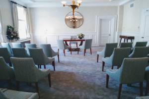 Our light and luxurious Alexandra Room is a perfect marriage of modern and art deco, in keeping with the building’s history. With a mix of original period pieces and bespoke made furnishings, it makes a serene and sophisticated setting for your special occasion.
